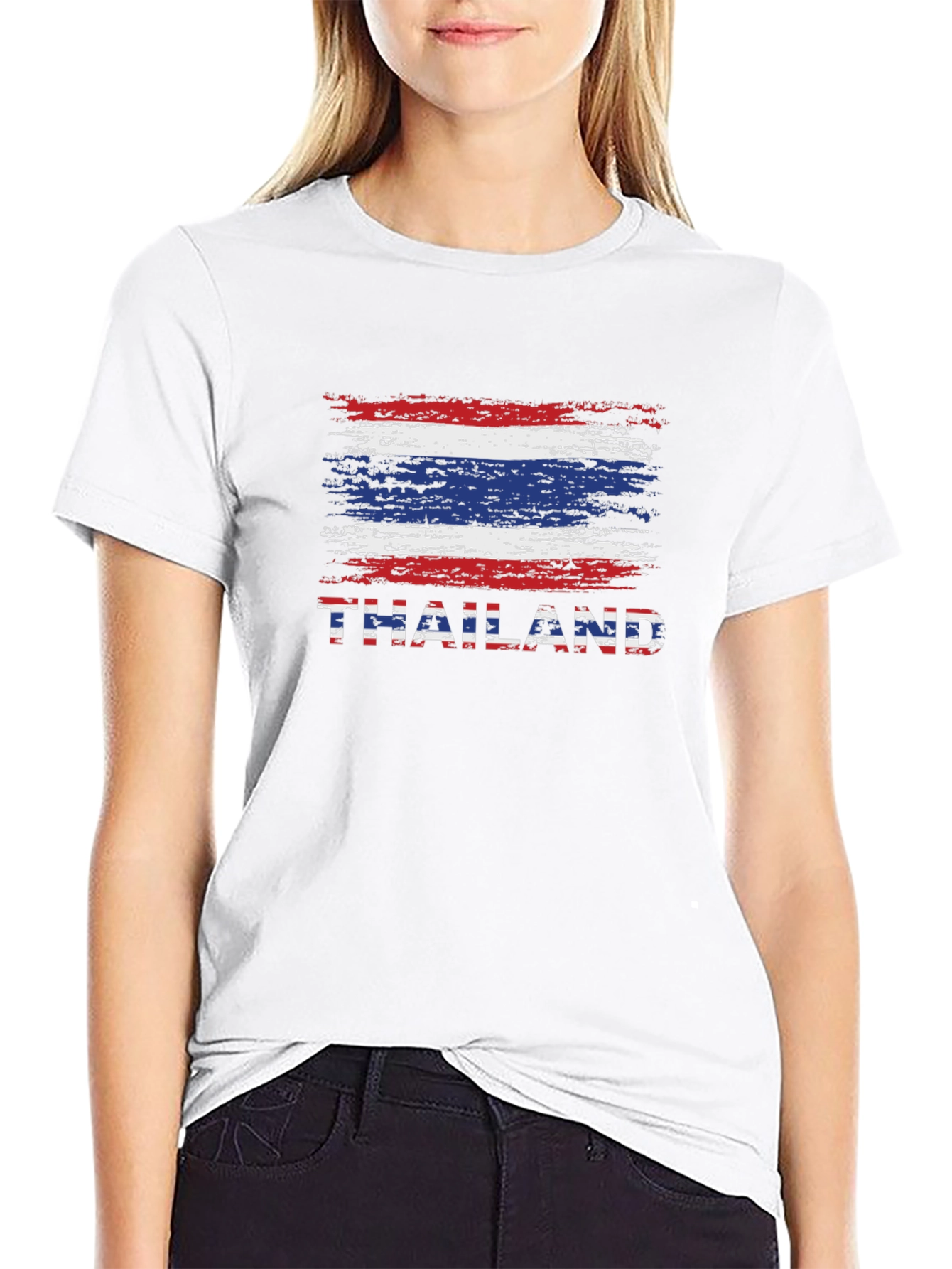 Show off your love for Thailand with this stylish black t-shirt. The shirt features a distressed Thailand flag graphic on the chest, complete with the country's name in a matching design. Made from a comfortable, lightweight fabric, this crew neck tee is perfect for everyday wear. Whether you're exploring the city, relaxing at home, or cheering on your favorite sports team, this t-shirt is a great way to express your pride. Pair it with jeans, shorts, or khakis for a casual yet fashionable look. A must-have for any Thailand enthusiast!