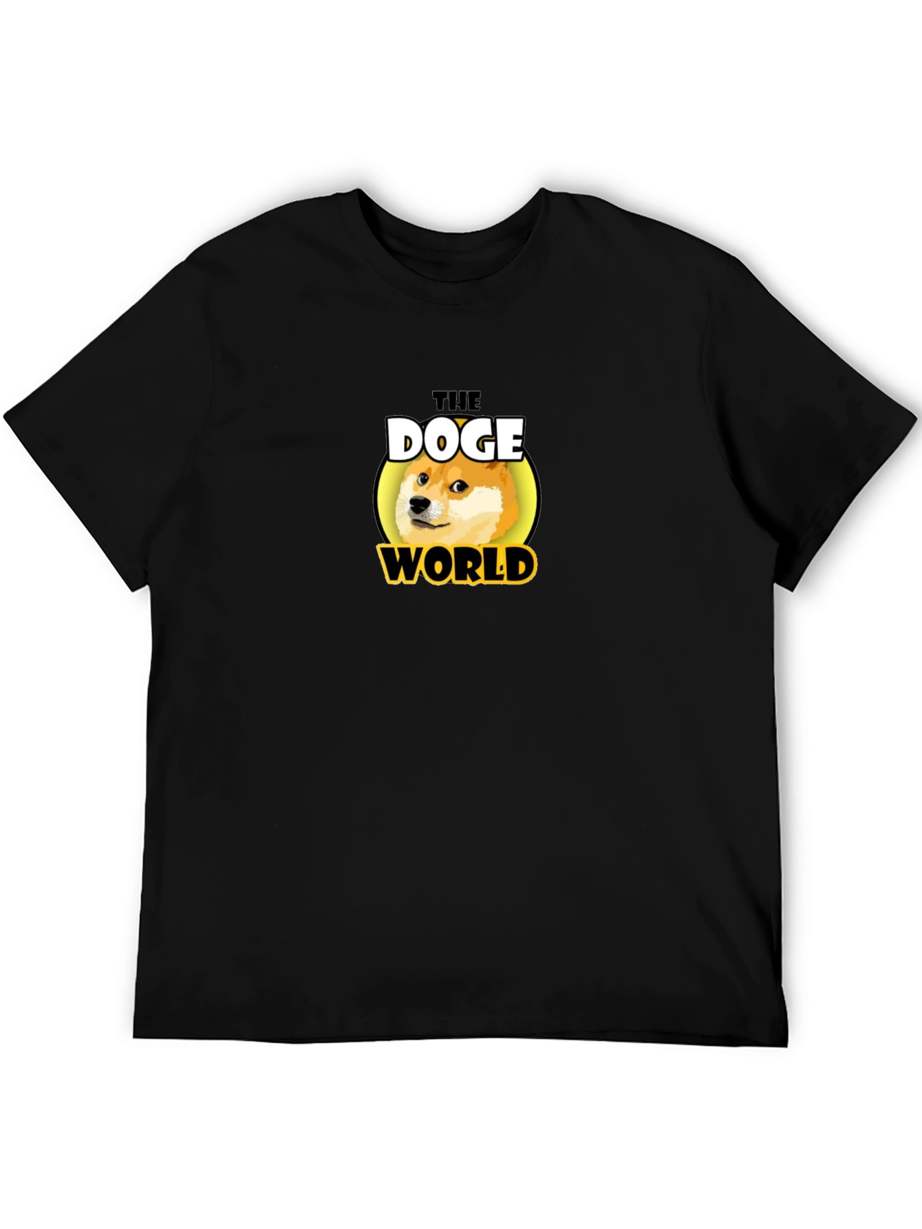 Show your love for the iconic Doge meme with this stylish black t-shirt. Made from comfortable, breathable fabric, this shirt features a high-quality print of the famous Doge face surrounded by a yellow circle with "The Doge World" printed in a bold, eye-catching font. The classic fit makes it a versatile addition to any wardrobe. Perfect for casual wear, meme enthusiasts, or anyone who wants to make a statement. Get yours today and join The Doge World!