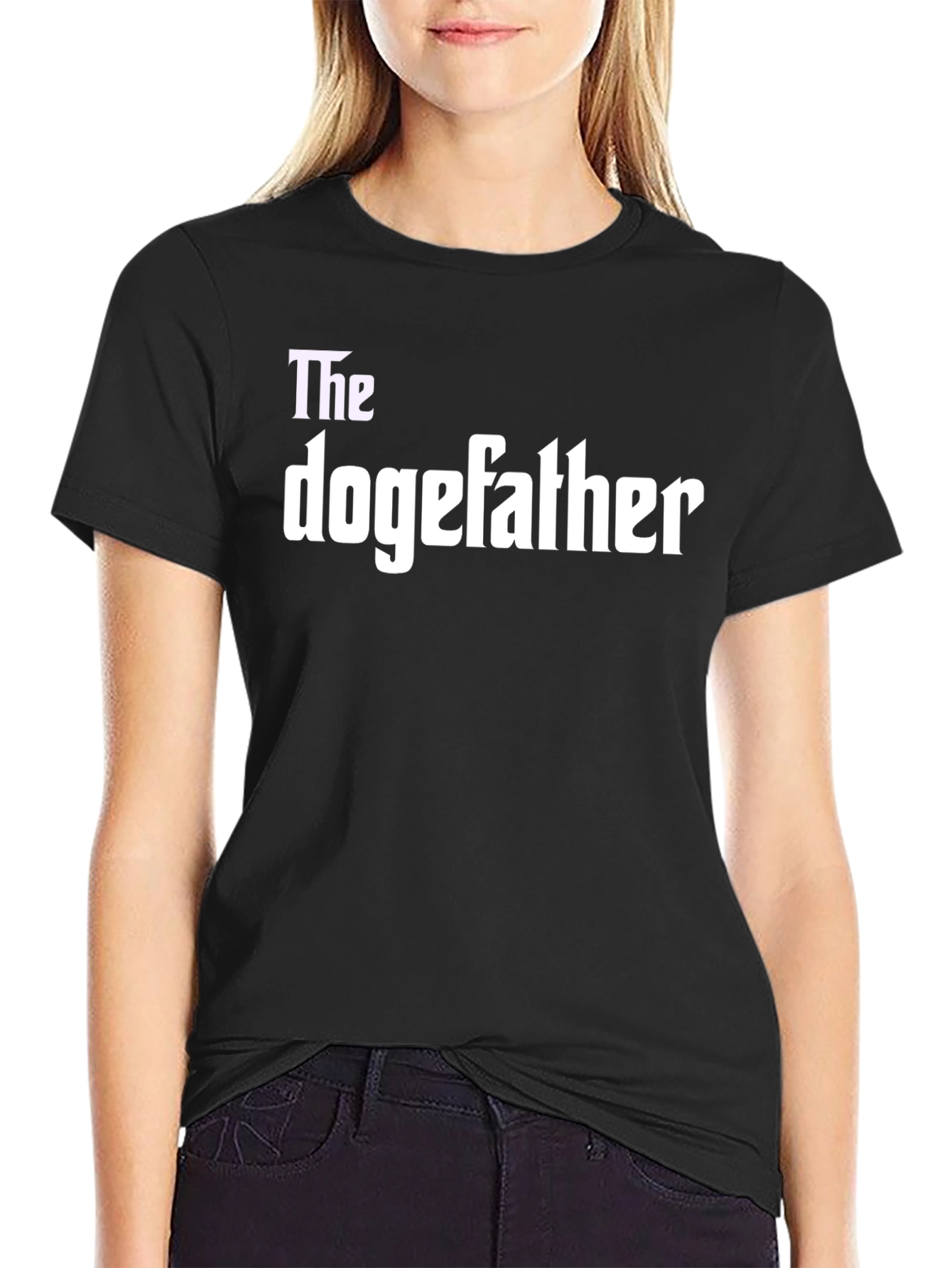 Embrace your inner meme lord with this bold black t-shirt. Featuring the iconic "The dogefather" graphic in a clean, contrasting white font, this tee offers a humorous nod to pop culture. Crafted from what appears to be soft, breathable cotton, it ensures comfort for everyday wear. The classic fit and short sleeves make it a versatile addition to any casual wardrobe. This tee is perfect for casual outings, meme enthusiasts, or anyone who enjoys a good laugh. Make a statement and show off your unique style with this eye-catching graphic tee.