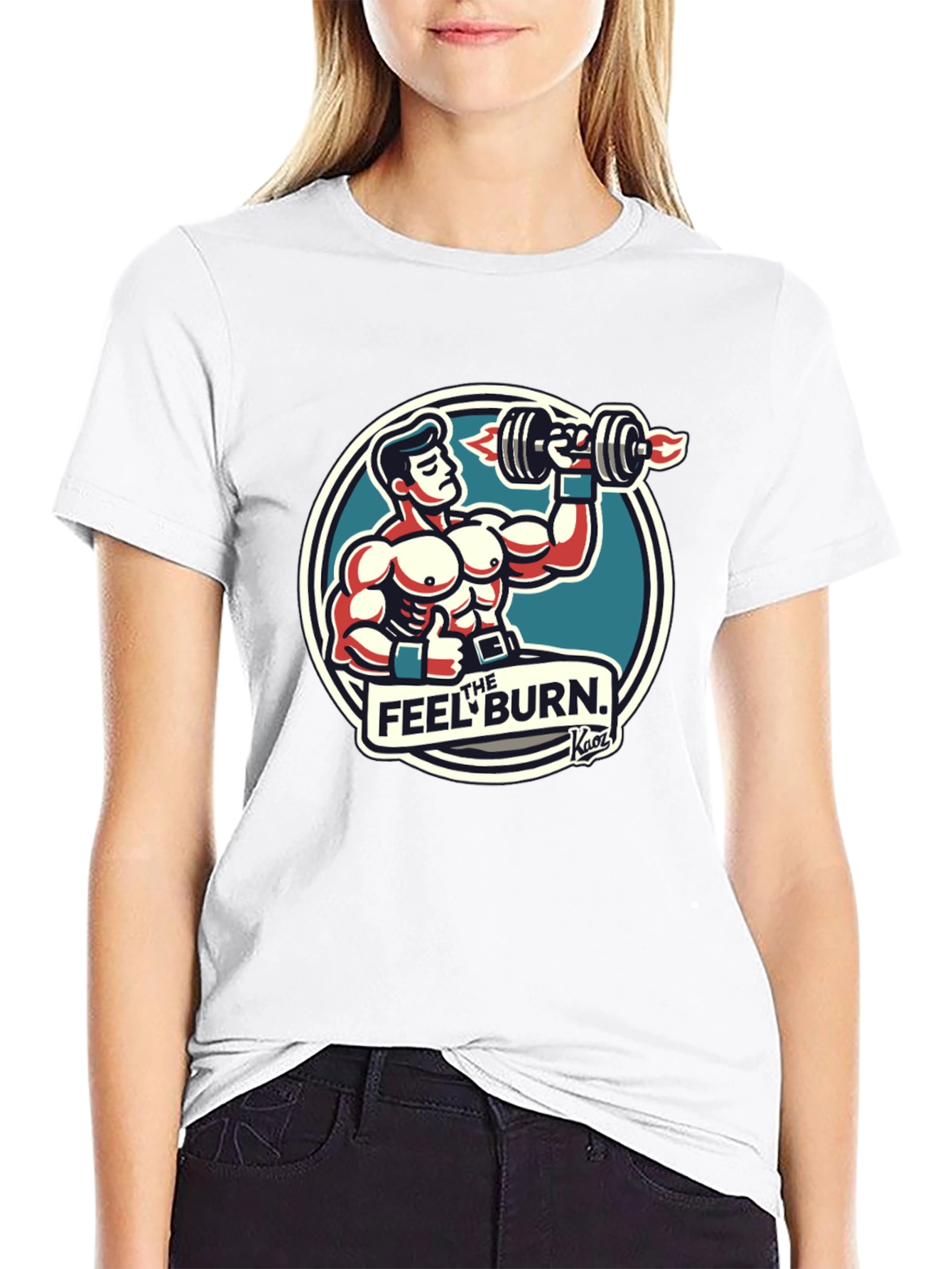 Show off your passion for fitness with The Feel Burn black graphic tee. This eye-catching shirt features a bold design of a muscular figure lifting weights, with flames for added intensity, set within a classic circular logo. The high-quality print ensures lasting vibrancy, while the black cotton material provides all-day comfort and durability. Ideal for workouts, casual wear, or making a statement at the gym. Embrace your fitness journey with this unique and stylish tee. Get yours now and let the world feel the burn with you!