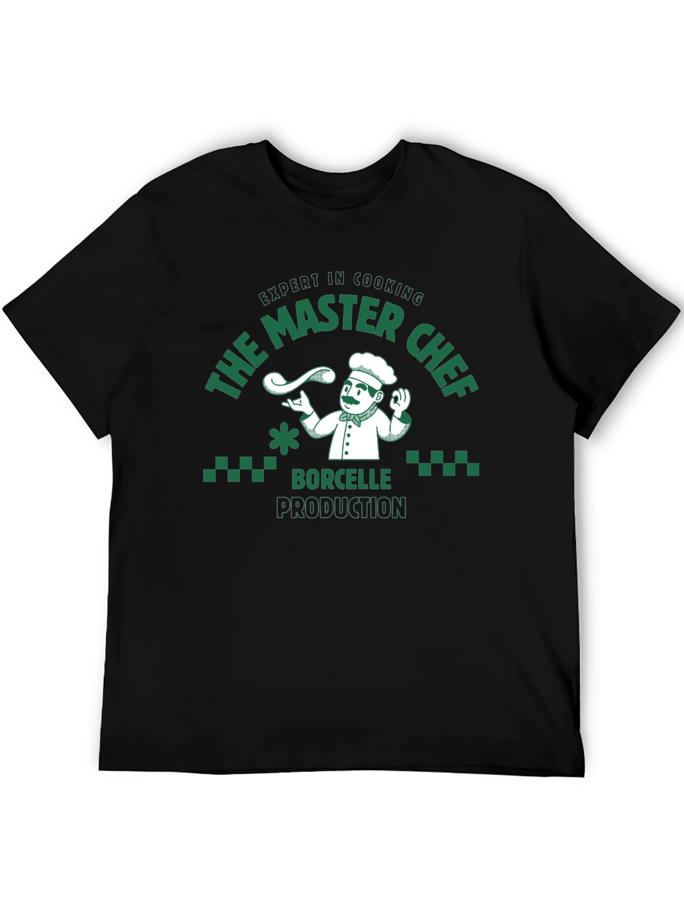 Showcase your culinary passion with The Master Chef T-Shirt! This stylish black tee features a unique design with a cartoon chef tossing dough, encircled by the words "The Master Chef" and "Expert in Cooking" in vibrant green. The design also incorporates green checkered elements for added visual appeal. Made from comfortable, breathable fabric, this shirt is perfect for aspiring cooks, culinary enthusiasts, or anyone who appreciates a touch of humor in their wardrobe. Wear it while cooking, at food festivals, or simply as a statement piece to express your love for all things culinary. It makes a great gift for the chefs in your life!