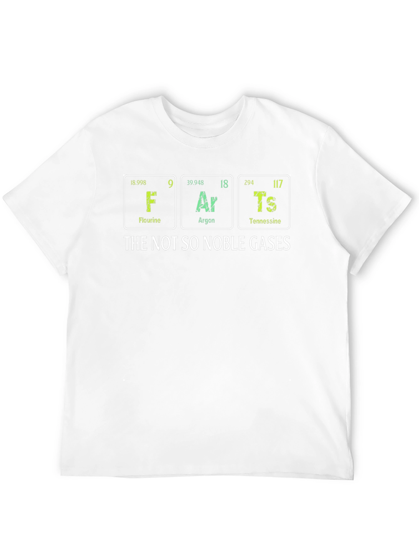 This black t-shirt features a fun and clever graphic showcasing elements from the periodic table - Fluorine, Argon, and Tennessine - arranged as the "Not So Noble Gases." The design is printed on what appears to be a comfortable, breathable cotton blend tee, perfect for everyday wear. The shirt makes a great conversation starter and a unique statement piece for science enthusiasts and anyone with a quirky sense of humor. Pair it with jeans or shorts for a casual look, or dress it up with a blazer for a more polished style. This t-shirt is a must-have for those who appreciate clever designs and science-themed apparel.