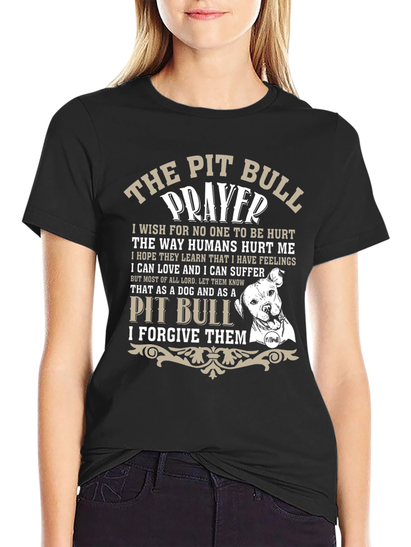 Show your love for pit bulls with this striking graphic t-shirt. Featuring a bold design with the powerful 'Pit Bull Prayer' text and an adorable pit bull image, this black tee is perfect for dog lovers. The shirt appears to be made from a comfortable material. Wear it proudly to spread awareness and showcase your compassion for these amazing animals. Ideal for casual outings, dog walks, or simply relaxing at home. This t-shirt is a great way to start conversations and share your passion for pit bulls. Let the world know that you stand with them!