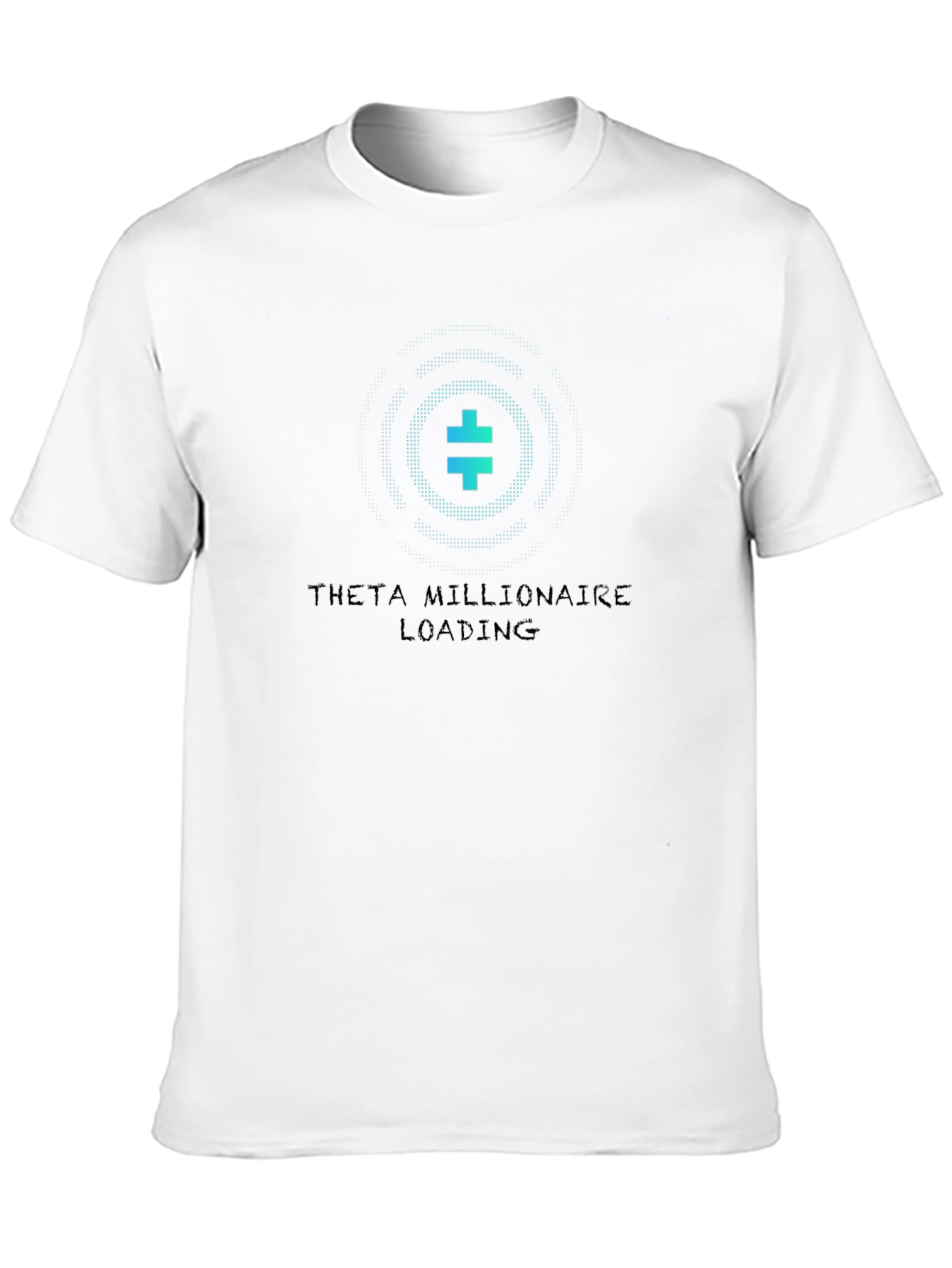Show off your cryptocurrency enthusiasm with this Theta Millionaire Loading Black T-Shirt! Featuring a blue Theta Network logo surrounded by a digital-style circle and the text "THETA MILLIONAIRE LOADING", this unique tee is perfect for crypto investors and enthusiasts. The sleek black color and comfortable fabric make it ideal for casual wear, crypto conferences, or online trading sessions. Made from what appears to be a soft cotton blend, this shirt offers both style and comfort. Grab yours today and let the world know you're on the path to becoming a Theta millionaire! A great conversation starter!