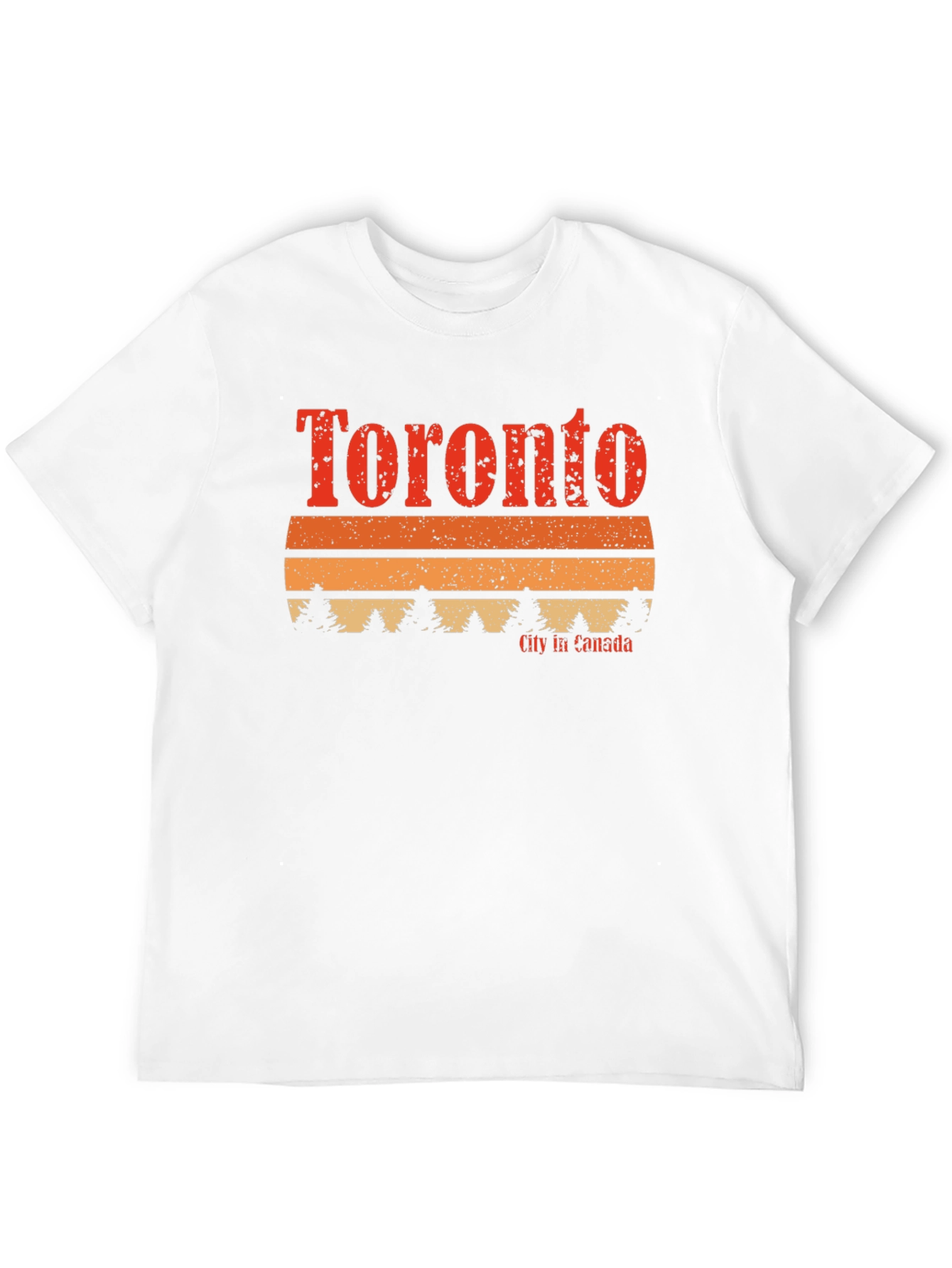 Show off your love for Toronto with this stylish retro t-shirt! This classic black tee features a vintage-inspired design with the word "Toronto" in a distressed orange font, accented by sunset stripes and silhouette of trees. Below the design reads "City in Canada" as a tribute to the origin of this design. Made from soft, breathable cotton, this shirt offers all-day comfort and a flattering fit. Whether you're exploring the city or just relaxing at home, this Toronto t-shirt is the perfect way to represent your favorite city in style. A perfect casual wear choice!