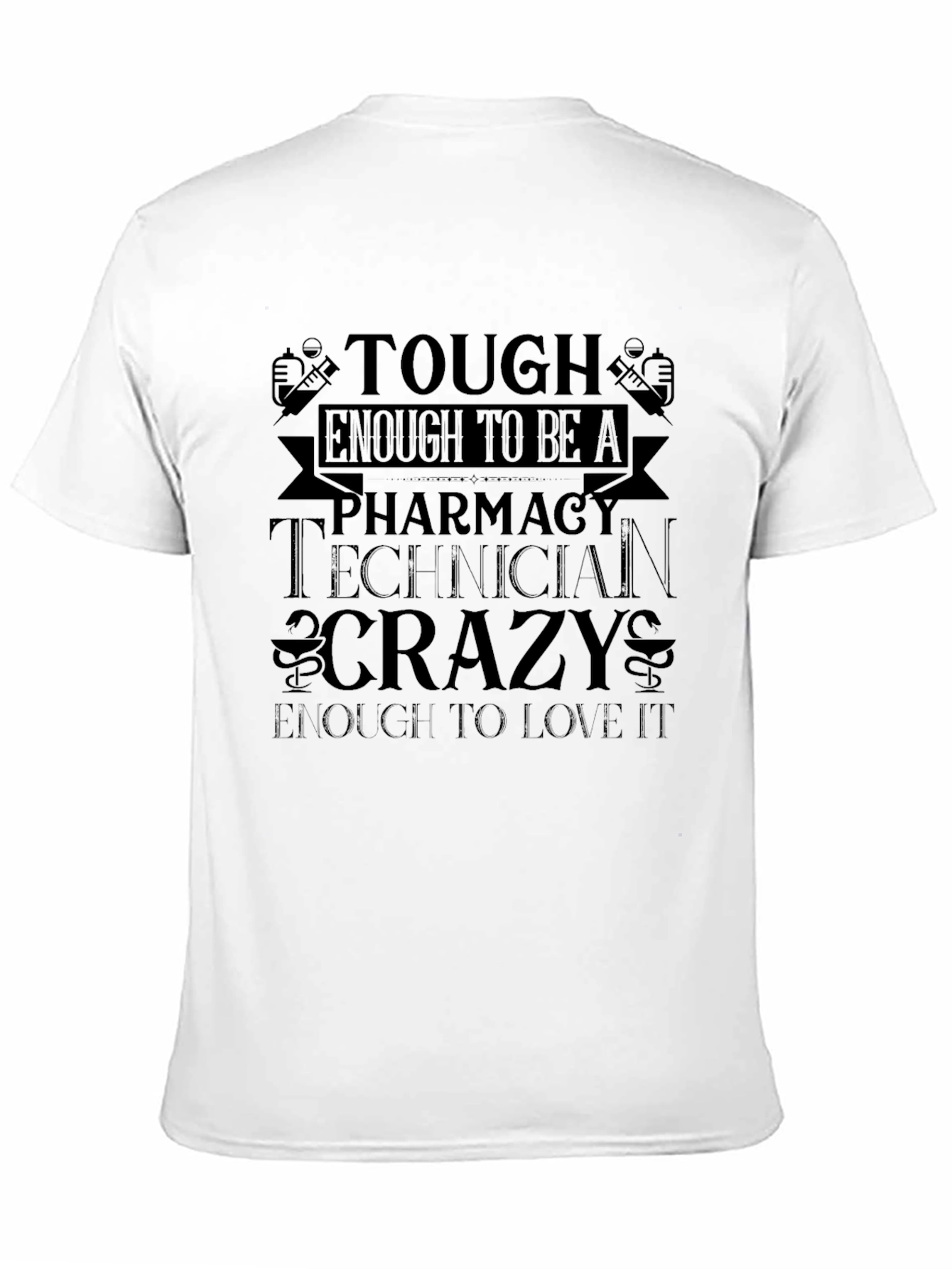Show off your passion for pharmacy with this bold black T-shirt! This tee features a standout design declaring "Tough Enough to Be A Pharmacy Technician Crazy Enough to Love It". Made from a comfortable, breathable fabric, this shirt is perfect for everyday wear, whether you're at work, running errands, or just relaxing at home. Its classic fit makes it a versatile addition to any wardrobe. It's a great gift for pharmacy technicians or anyone in the medical field with a sense of humor and pride in their profession. Available in various sizes. Get yours today!