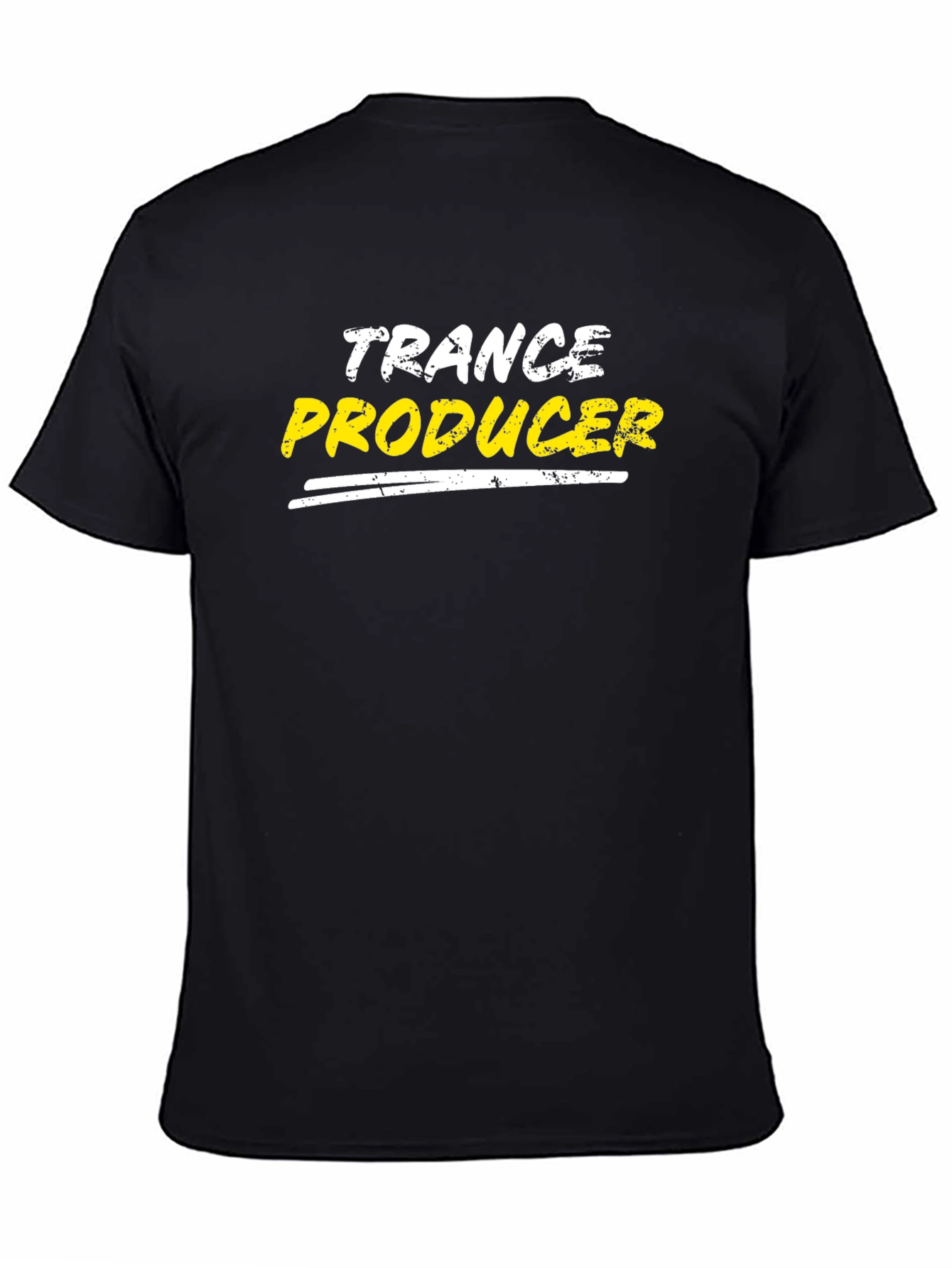 Show off your passion for electronic music with this stylish Trance Producer T-Shirt. Made from comfortable, breathable fabric, this tee features a bold graphic design with "TRANCE" in white and "PRODUCER" in yellow font, underlined by two simple stripes. Its classic fit makes it a versatile piece for casual wear, music events, or studio sessions. Perfect for music enthusiasts, DJs, and electronic music producers, this t-shirt is a statement piece that expresses your love for the genre. Upgrade your wardrobe and let your passion shine with this unique tee.