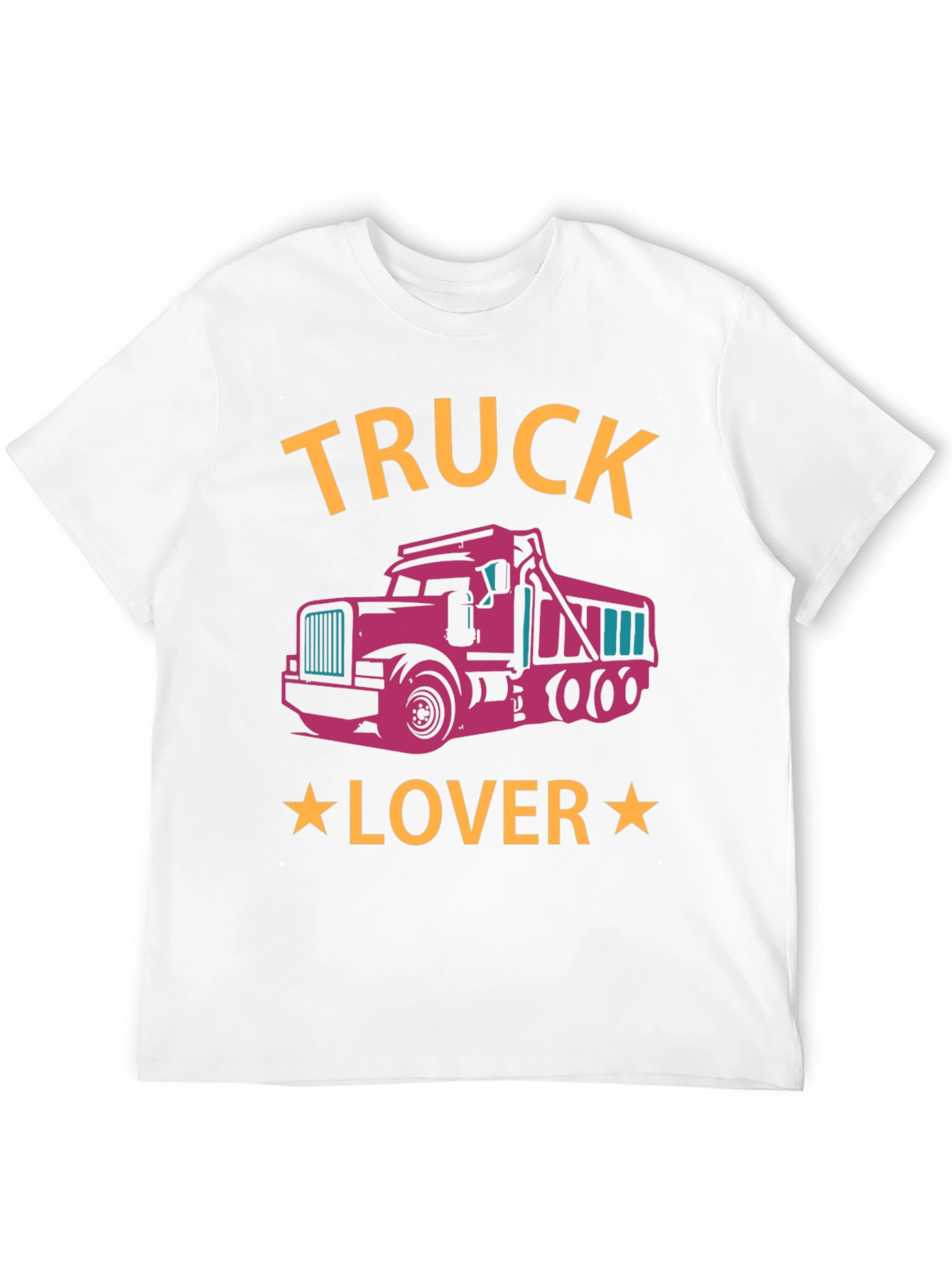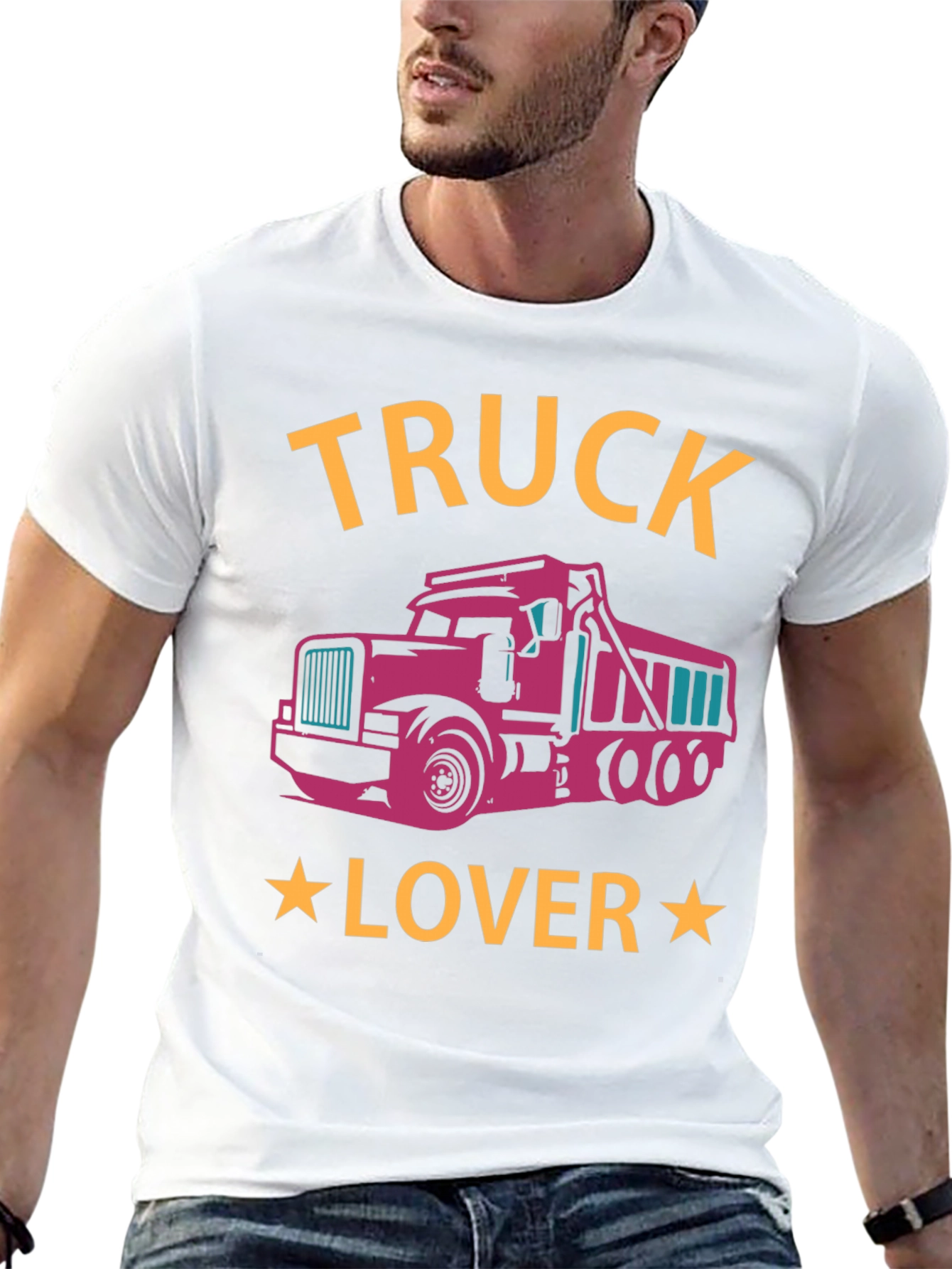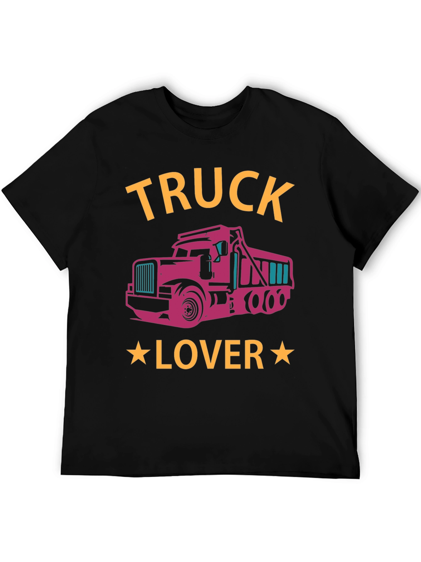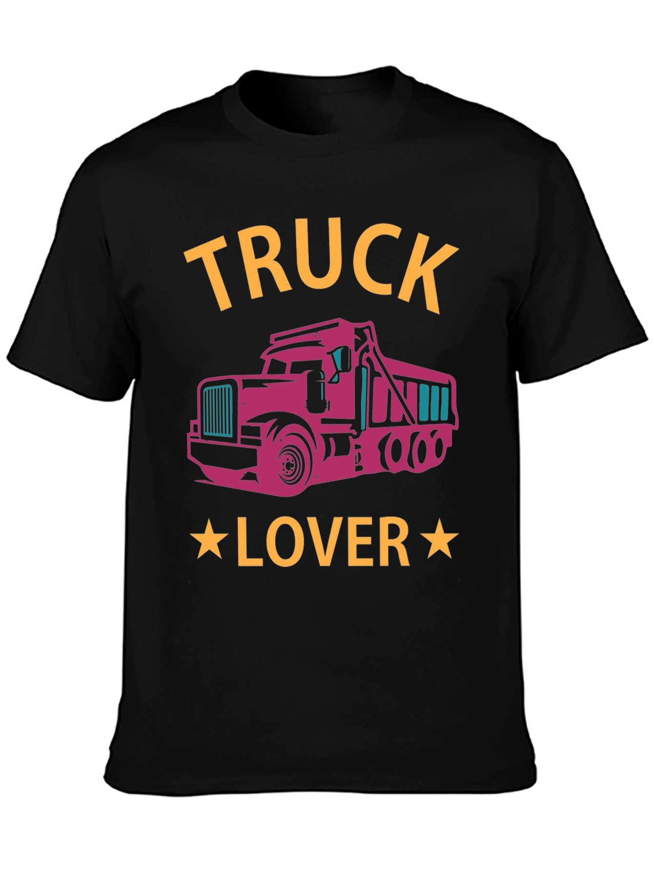Show your passion with this striking black T-shirt! Made from soft, comfortable cotton, it features a bold graphic design. The vibrant image includes a cool truck illustration, with the text "TRUCK LOVER" in a stylish font. Perfect for casual wear, this tee makes a statement. Whether you're a truck enthusiast or just love unique designs, this shirt is a must-have. Ideal for everyday wear, car meets, or as a gift for the truck lover in your life. Durable and eye-catching, it's a great addition to any wardrobe. Grab yours today!
