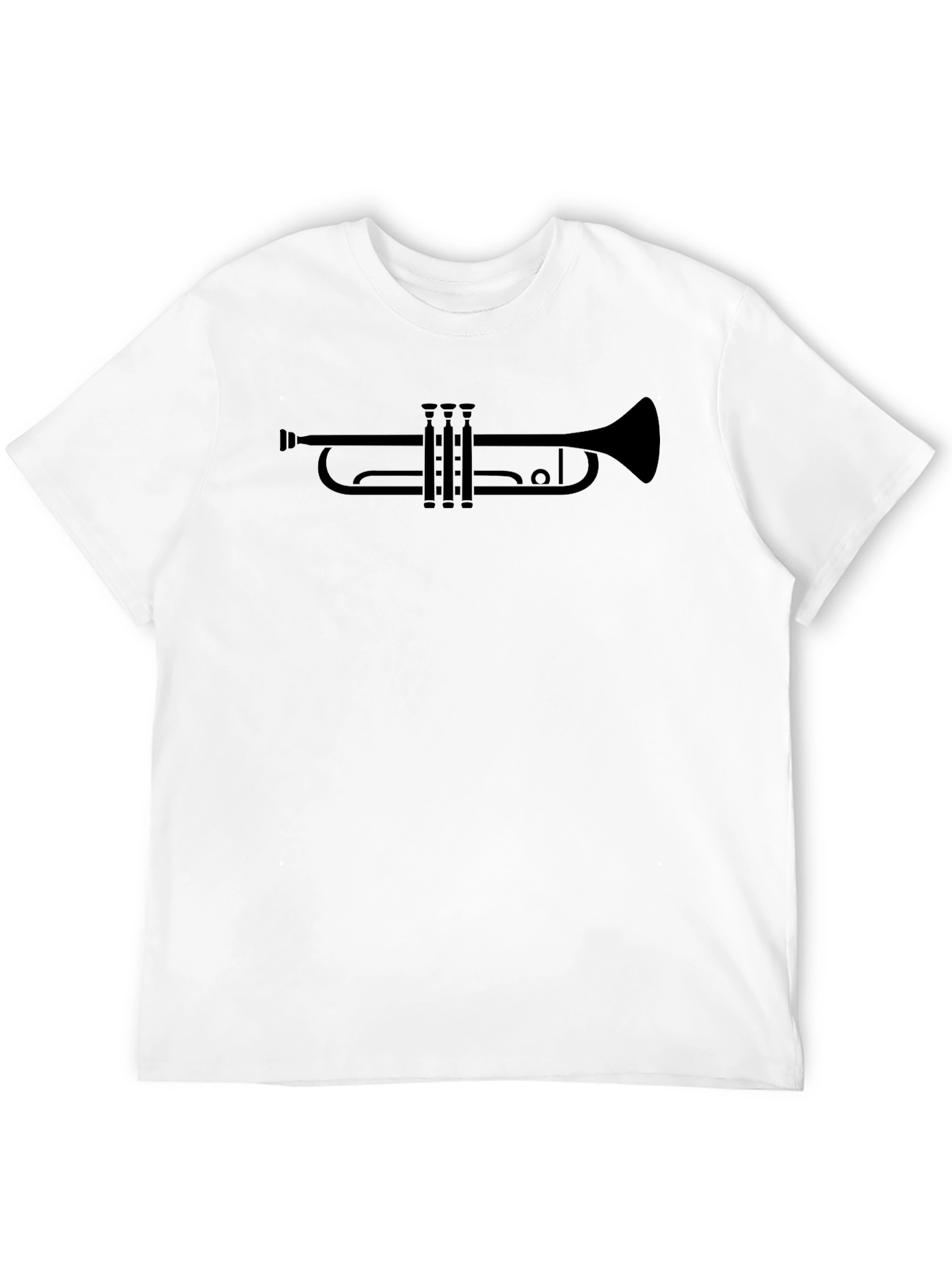 Show your love for music with this stylish black t-shirt. This tee features a bold trumpet graphic, perfect for musicians, music lovers, or anyone who appreciates a unique design. Made from soft, comfortable cotton, this shirt is ideal for everyday wear. The classic fit makes it a versatile addition to any wardrobe. Whether you're heading to a concert, jamming with friends, or simply want to express your passion for music, this trumpet t-shirt is a great choice. Get yours today and let your style sound off!