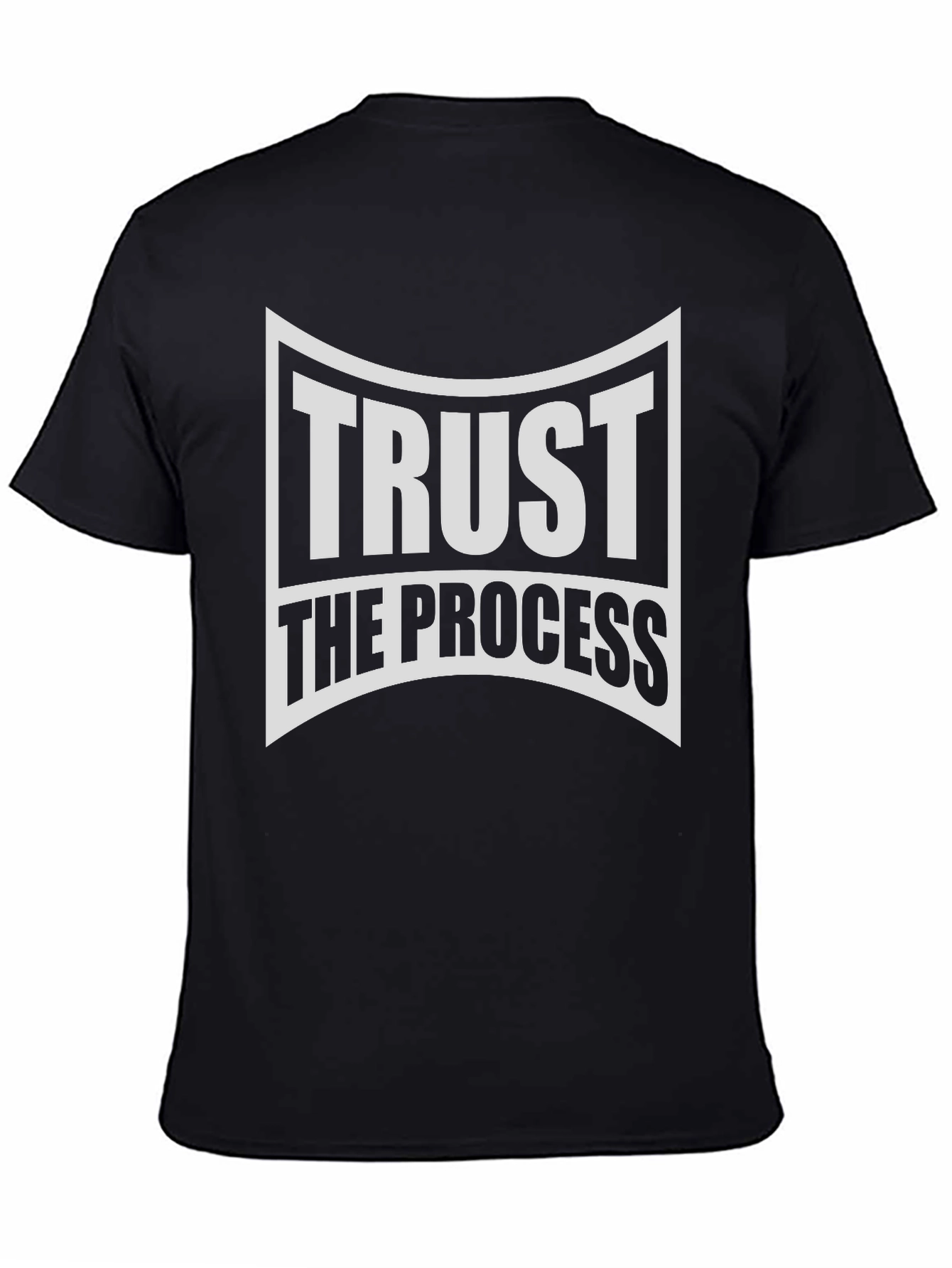Show your dedication to progress with this stylish black t-shirt. Featuring a bold, white graphic that reads "Trust The Process," this tee is perfect for anyone committed to growth and improvement. Made from a soft, comfortable fabric, it's ideal for everyday wear. Whether you're hitting the gym, running errands, or simply relaxing at home, this shirt will keep you looking and feeling great. The classic design pairs well with jeans, shorts, or joggers, making it a versatile addition to your wardrobe. Embrace the journey and trust the process!