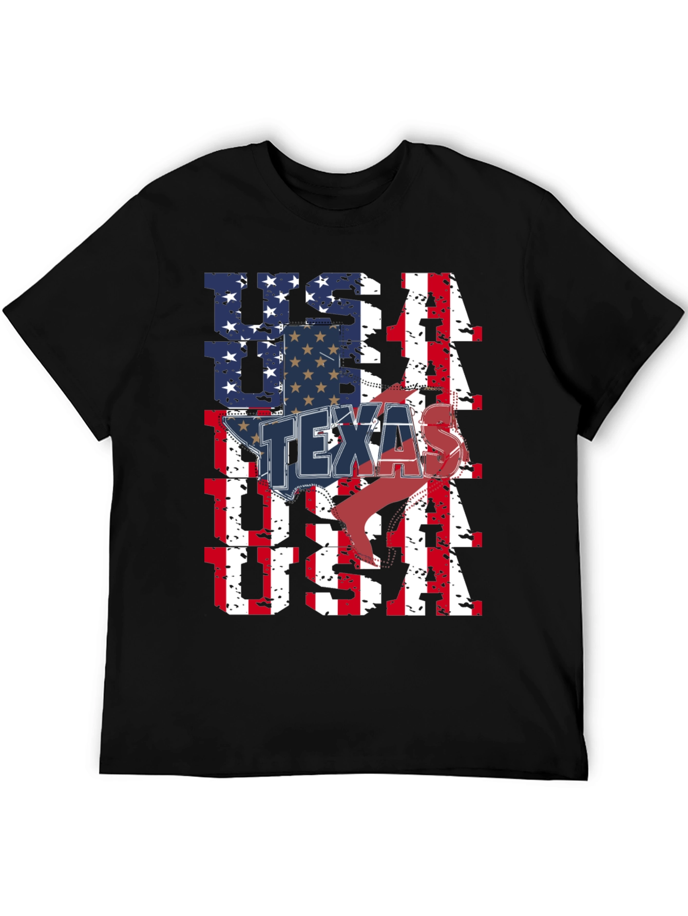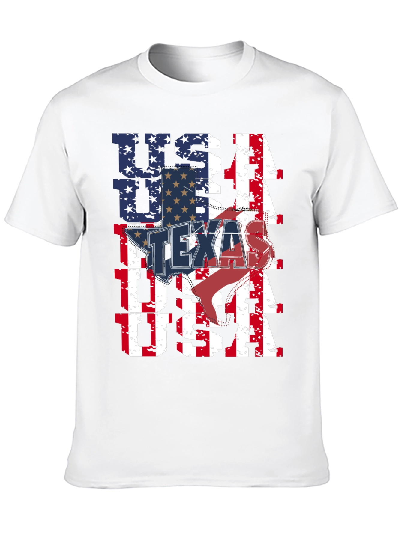 Show your Texan pride with this bold graphic t-shirt. Featuring a distressed American flag design with 'USA' and 'Texas' text overlaid, this tee is perfect for casual wear. The Texas state outline adds a unique touch to the patriotic theme. Made from a comfortable, breathable fabric, this t-shirt is ideal for everyday wear, patriotic holidays, or showing off your Texas roots. Pair it with jeans or shorts for a relaxed, stylish look. Get yours today and celebrate your love for Texas and the USA!