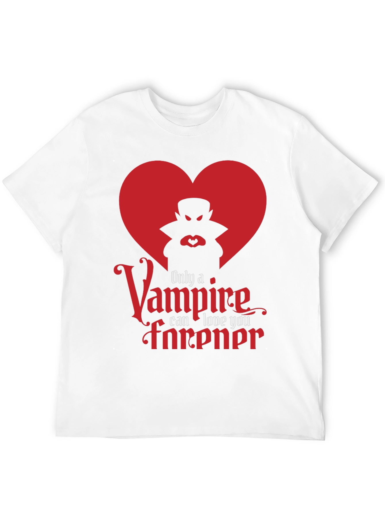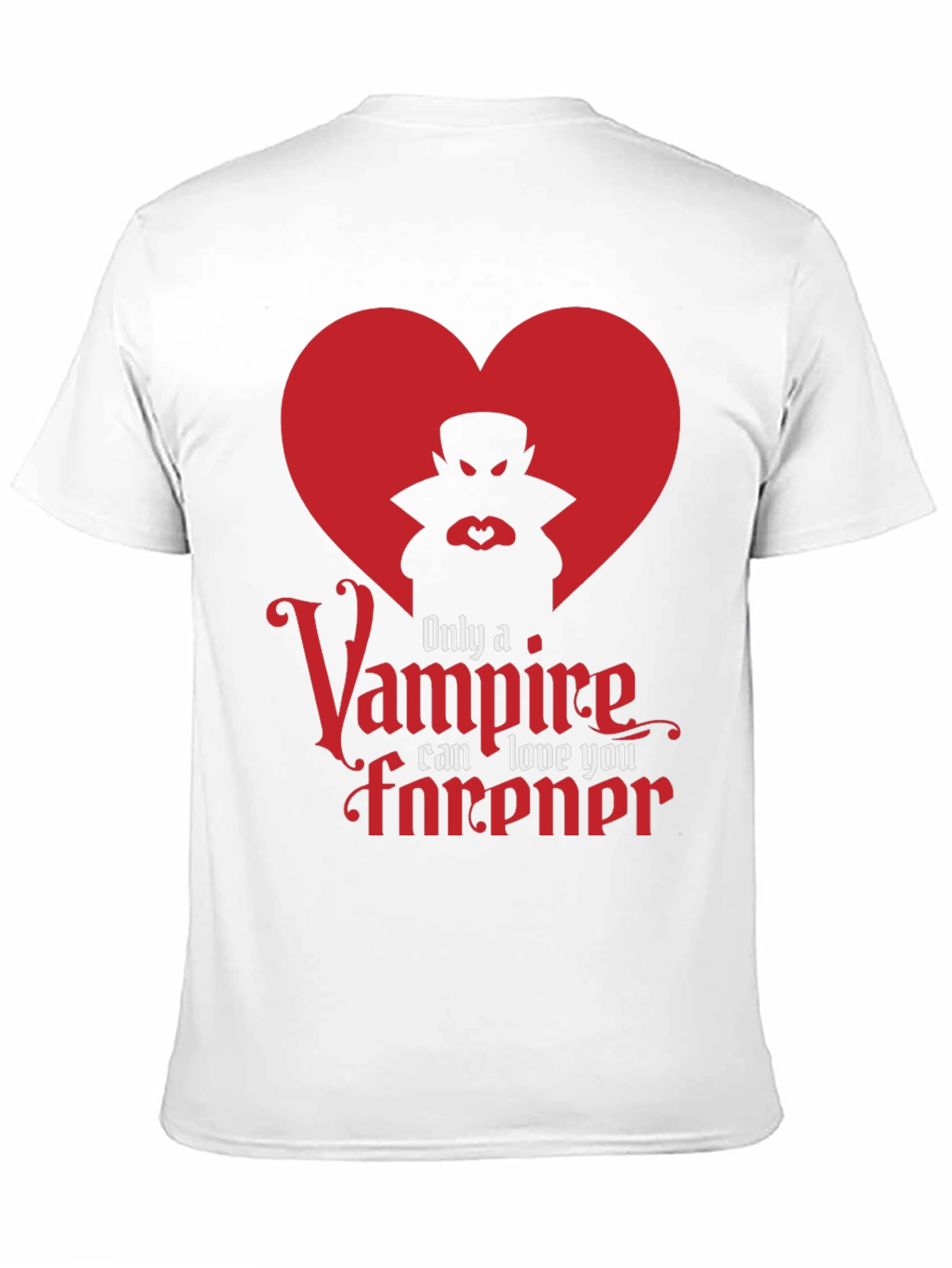 Show your love for the spooky season with this unique t-shirt! Featuring a bold graphic of a vampire silhouette inside a red heart, accompanied by the phrase "Only a Vampire can love you forever", this shirt is a perfect blend of gothic romance and playful charm. Made from a soft, breathable fabric, this shirt offers comfort and style for everyday wear. Whether you're attending a Halloween party, enjoying a night out, or simply expressing your unique style, this tee will be an ideal choice! Get yours today and express your unique style!