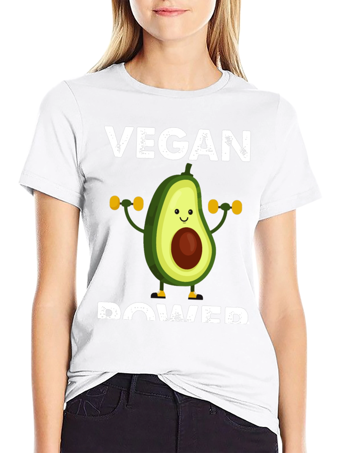 Show off your love for plant-based power with this fun and unique t-shirt! Featuring a cute avocado character lifting dumbbells, this tee is perfect for vegans, vegetarians, and fitness enthusiasts alike. The bold "VEGAN POWER" text makes a statement, while the playful design adds a touch of humor to your wardrobe. Made from a comfortable, breathable fabric, this shirt is ideal for workouts, casual outings, or simply lounging at home. Get yours today and embrace the power of plants in style!