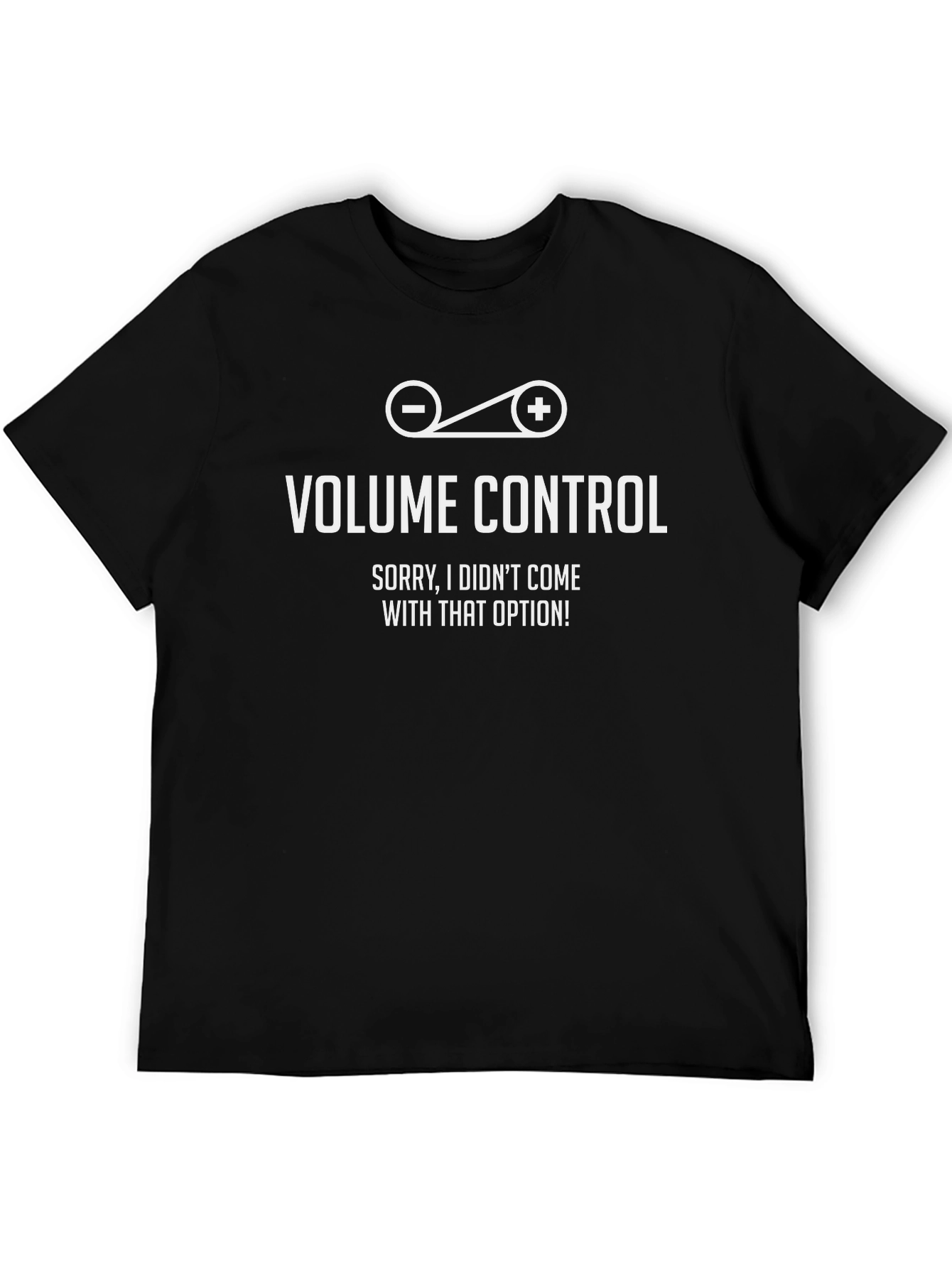 This humorous black t-shirt features a unique "Volume Control" graphic design. It showcases a white illustration of a volume control symbol, followed by bold white text that reads "VOLUME CONTROL". Below, the phrase "SORRY, I DIDN'T COME WITH THAT OPTION!" adds a playful touch. Made from comfortable fabric, this tee is perfect for casual wear. Its witty design makes it a great conversation starter and a fun addition to any wardrobe. Wear it to parties, gatherings, or simply for everyday amusement. A must-have for anyone with a sense of humor!