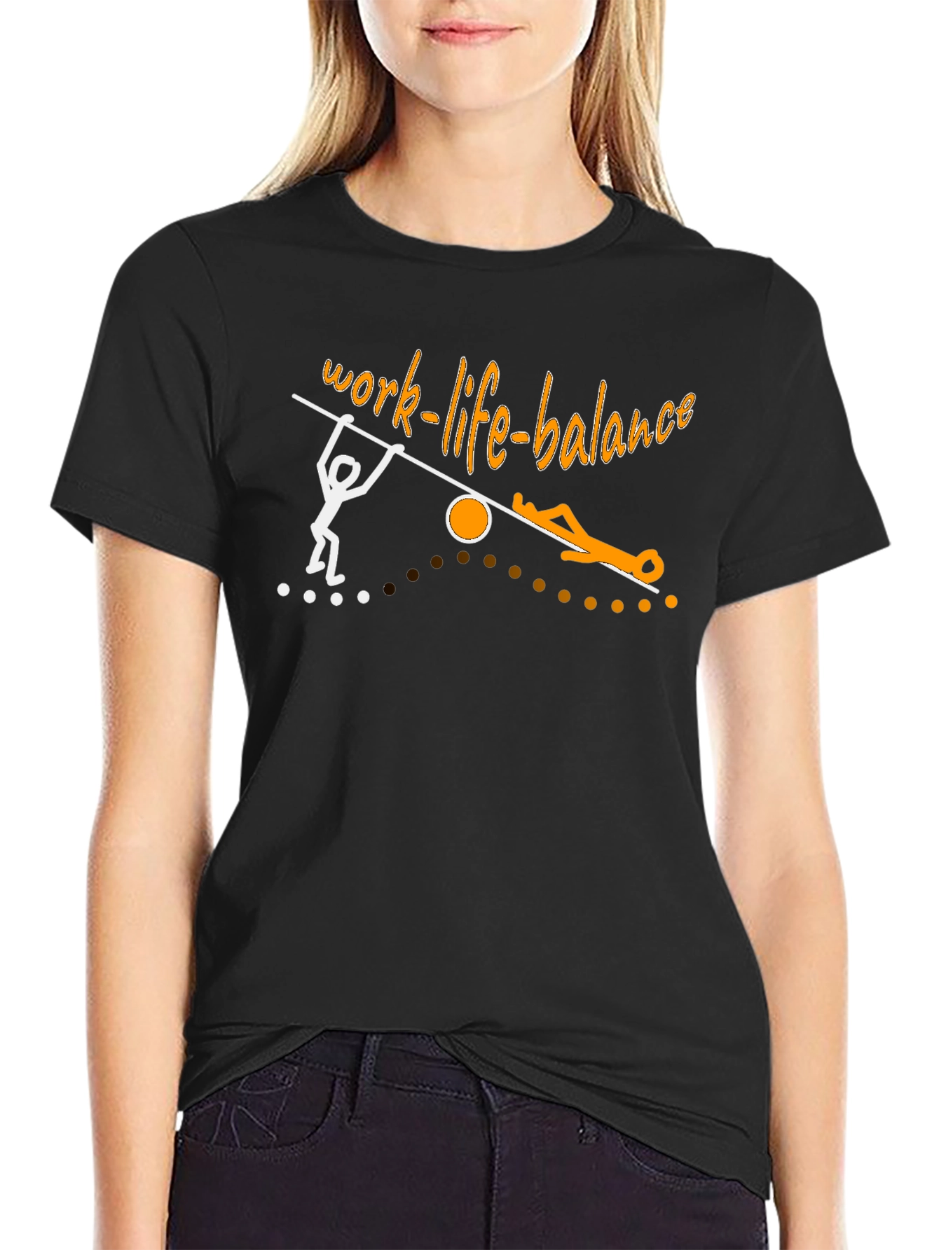 Show off your dedication to work-life balance with this graphic t-shirt. This tee features a stick figure design demonstrating the balance between work and leisure. The whimsical image showcases a person balancing work and life, making it a great conversation starter. Made from comfortable materials, this t-shirt is perfect for casual outings, lounging at home, or as a thoughtful gift for someone who appreciates a balanced lifestyle. The design is printed on a soft, black fabric. Get yours today and promote a harmonious blend of work and play!