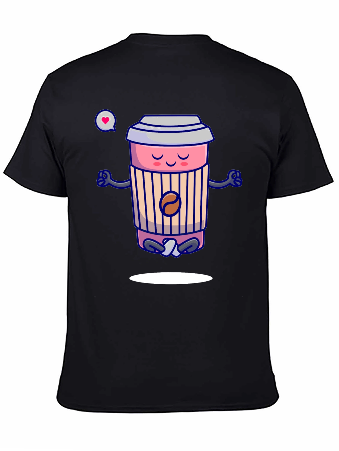 Find your inner peace with this unique Zen Coffee Cup T-shirt. Featuring a cute cartoon coffee cup in a meditative pose, this tee is perfect for coffee lovers and yoga enthusiasts alike. The design includes a serene coffee cup with its eyes closed, crossed legs, and a heart thought bubble expressing self-love. The tee is crafted from a comfortable, soft fabric, ensuring a relaxed fit for everyday wear. Wear it to your yoga class, coffee shop, or simply while lounging at home. This tee makes a great gift for anyone who appreciates mindfulness and a good cup of coffee! Available in black.